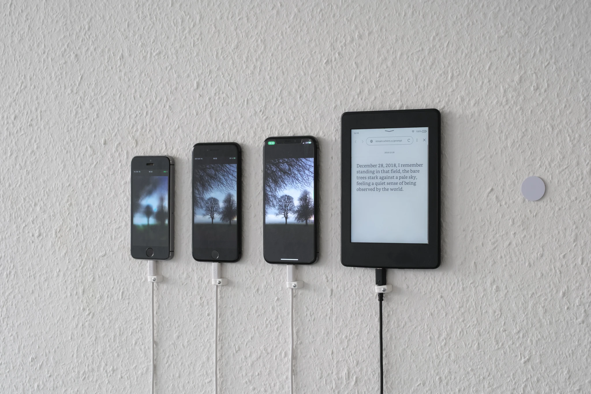 Mixed Media Installation (3 iPhones, Kindle), Website, Fine-Tuned AI-Model